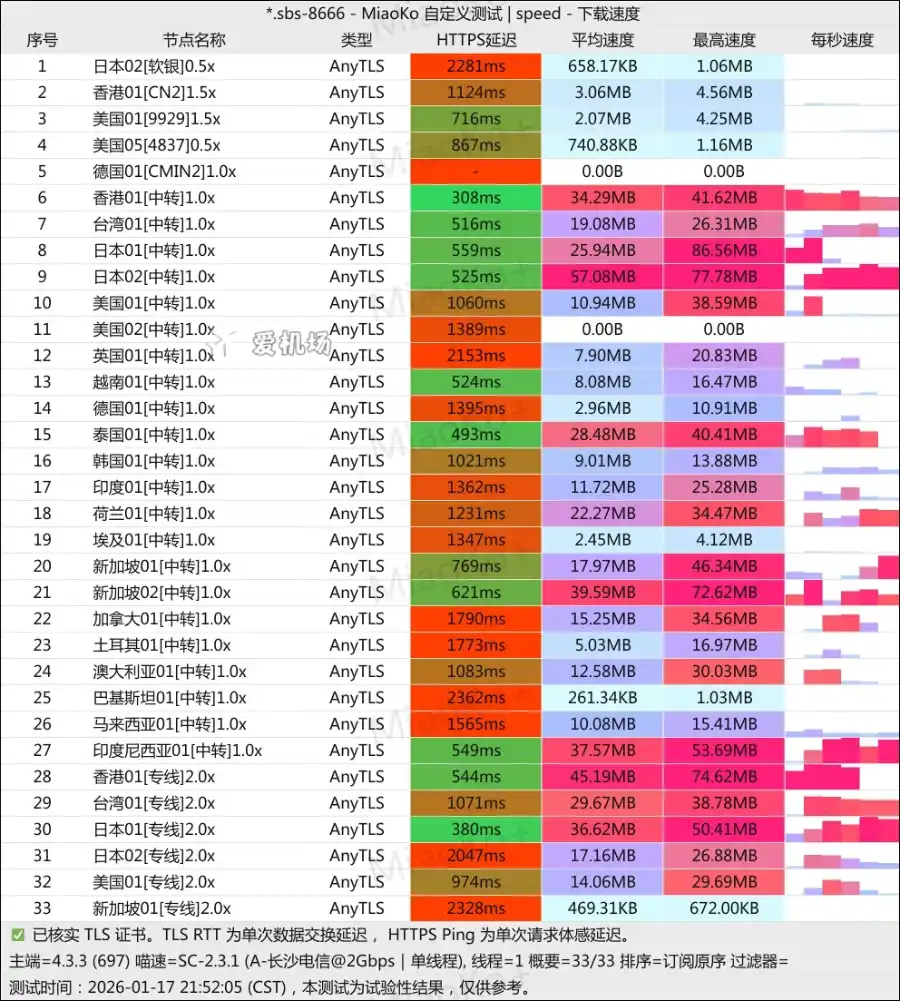 线路都有标注,比较直观。专线节点 2x 高倍率。直连节点速度表现堪忧。常用五大地区中转节点速度表现还行。