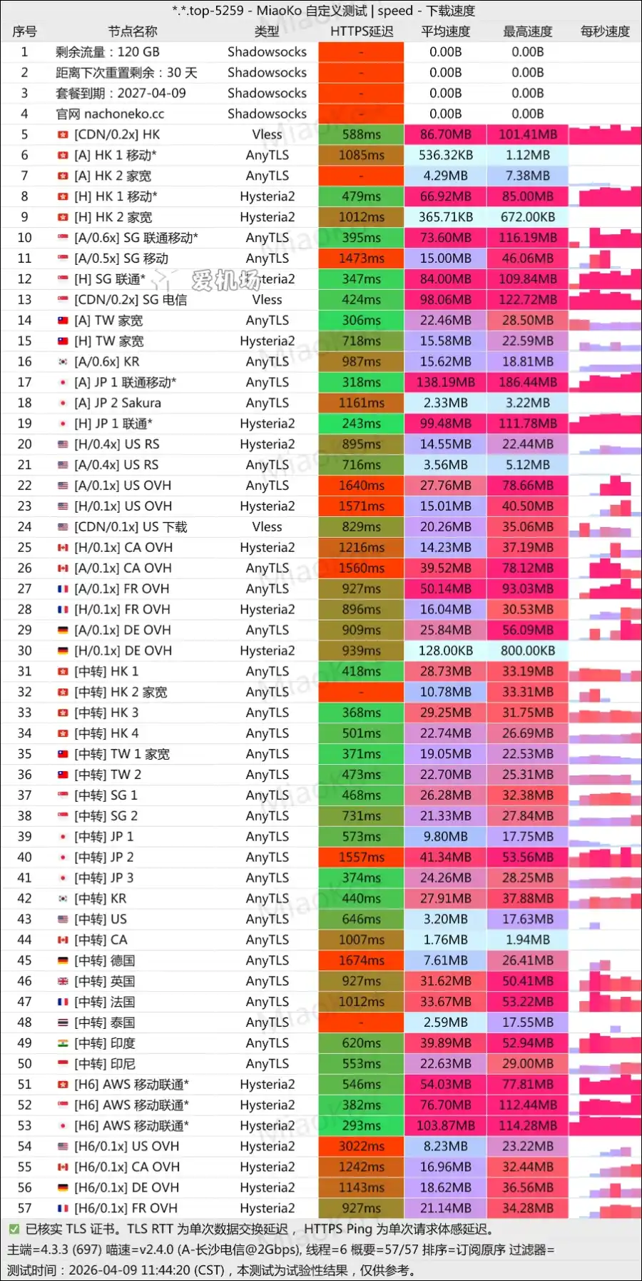 常用几大地区节点多数表现还行,部分节点速度起不来。冷门地区节点大多速度表现不佳。
