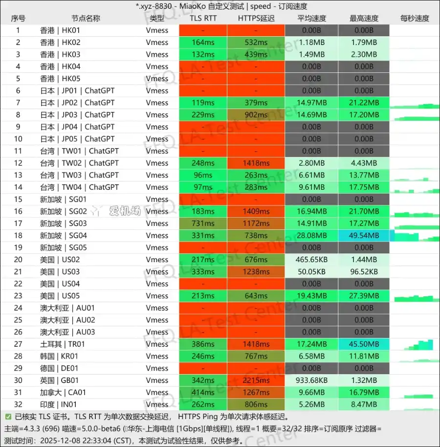 「缝缝补补又一年」,测速表现依旧是比较拉跨,节点可用性不太行。