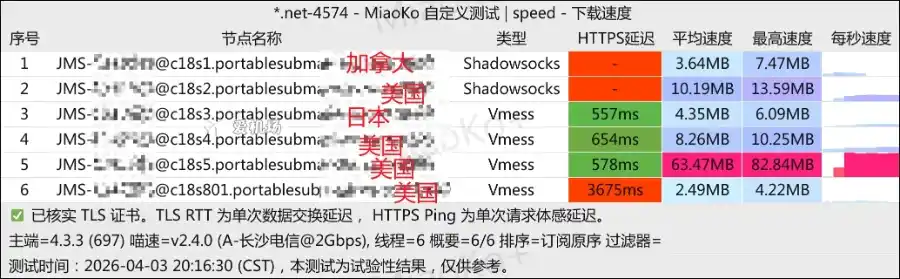 这是阔别几年的测速,同样做了模糊处理,因为暴露端口以及没有明确的地区标识,测出来的节点 IP 所属地区都直接做了对应的标记,以方便参考。